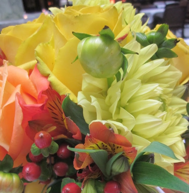 There was the ever present elephant standing guard in the rotunda and, for some reason, a strange, blinding yellow light above us. People were being herded out of the museum and servers were whirling in. Gwen, tres chic in a black sheath and silvery stilettos, had organized every plate, table cloth, bottle of wine, bite of delicious food and of course the flowers. The guests numbered 630 and this was no easy task. There were invitations, menus and programs to be printed and VIP's ego's to assuage. Our instructions were clear and simple: BIG and beautiful, with a few stems of green cymbidium orchids.